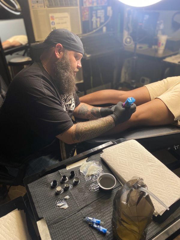 Hi my name is Eric or Krow, but I still might answer to an occasional caw-caw. Other than my time in the Army, Fayettenam will always be my home of 30+ years. A Westover Wolverine, Citadel Bulldog and FSU Bronco. I'm a self-taught artist with a wide variety of styles and genres that I enjoy tattooing. I've been drawing my whole life, studied Art in college and I've been tattooing here locally for almost 10 years. Let’s chat and see just how much life I can give